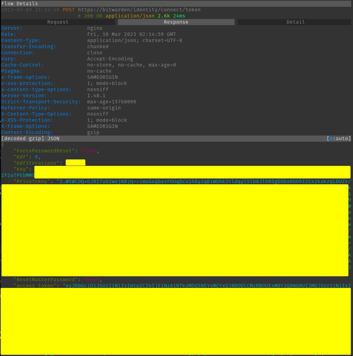 I wanted to know how the API Client ID and Secret were able to do this so I setup mitmproxy and exported environmental variables in my terminal to get a look at how bitwarden was making the authentication request.